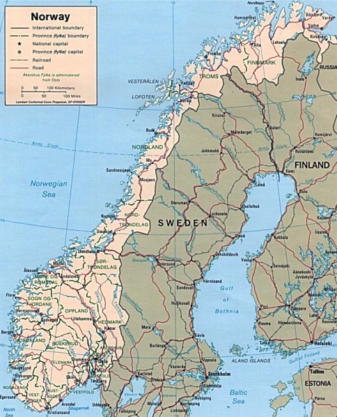 Norway is part of the Scandinavian Peninsula in the west part of it and is situated in North Europe. It has a beautiful fragmented coast with fjords at the Norway Sea in west and at the North Sea in south and is bathed in north by the cold and often frosted waters of the Arctic Ocean. Its neighbors are Sweden in east, Finland in the south part of the country and Russia in north-east part of the country.
